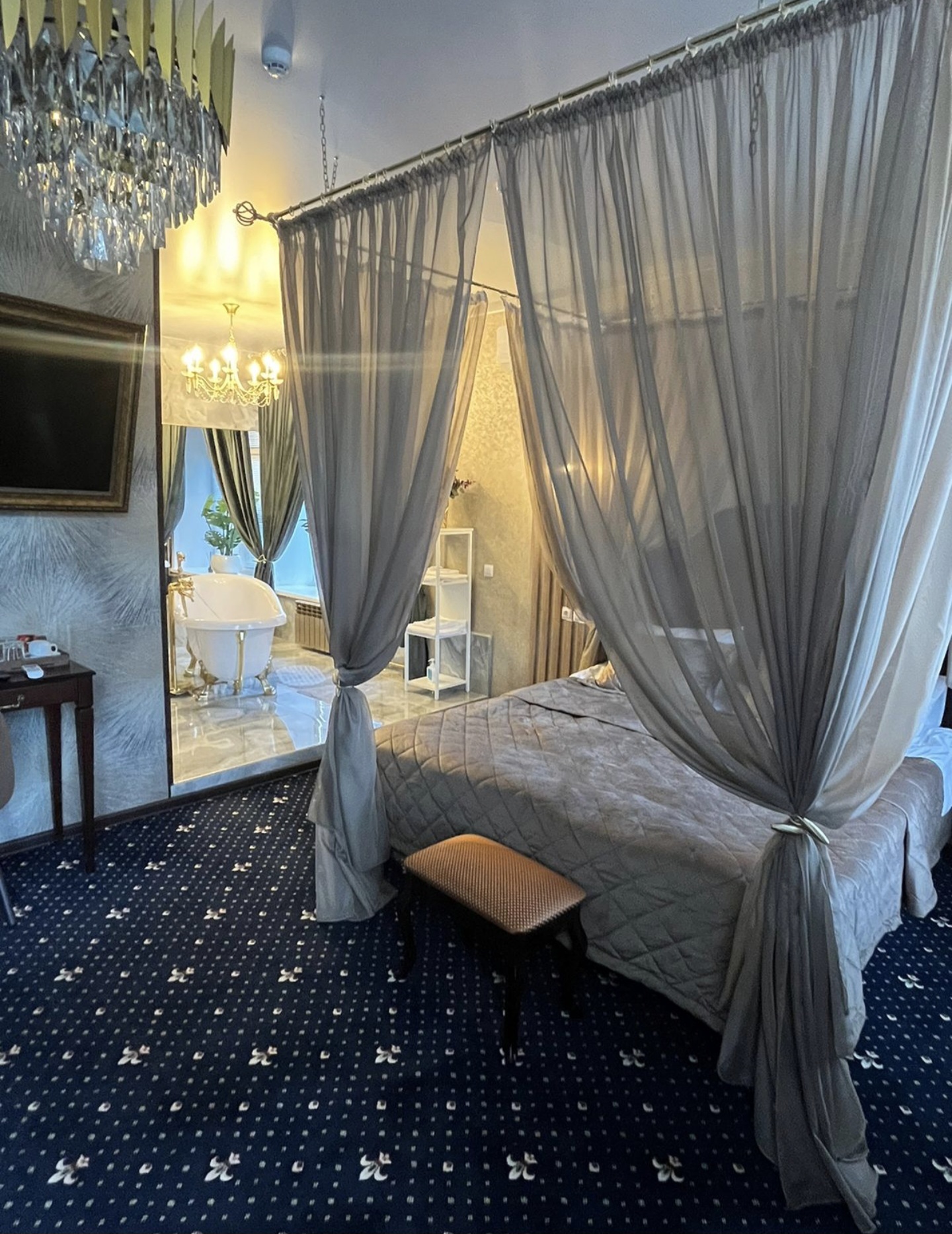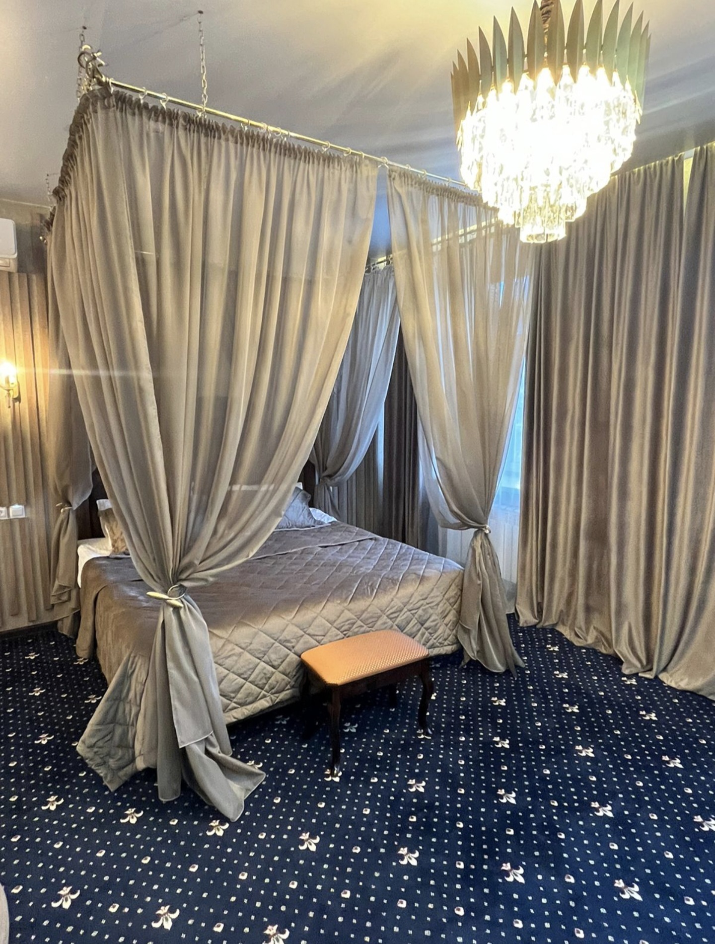 | Люкс 2-местный №2 (люкс) | 42 кв.м. | 2 чел. | Мебель (диван, зеркало, кровать двуспальная, стол, стулья, шкаф), Оборудование (мини-холодильник, те... | |
