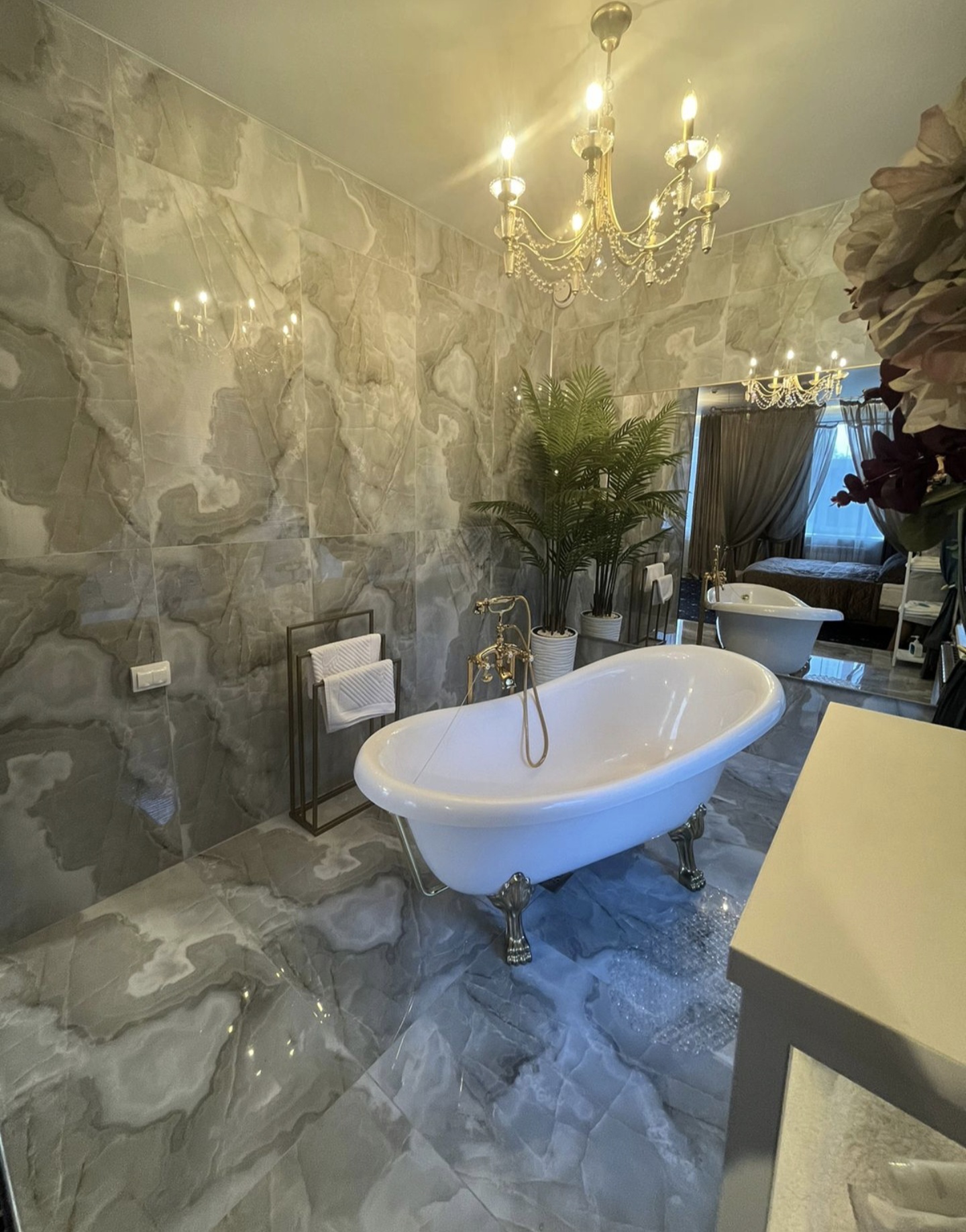 - Санузел: с джакузи, с душем, туалетные принадлежности, фен