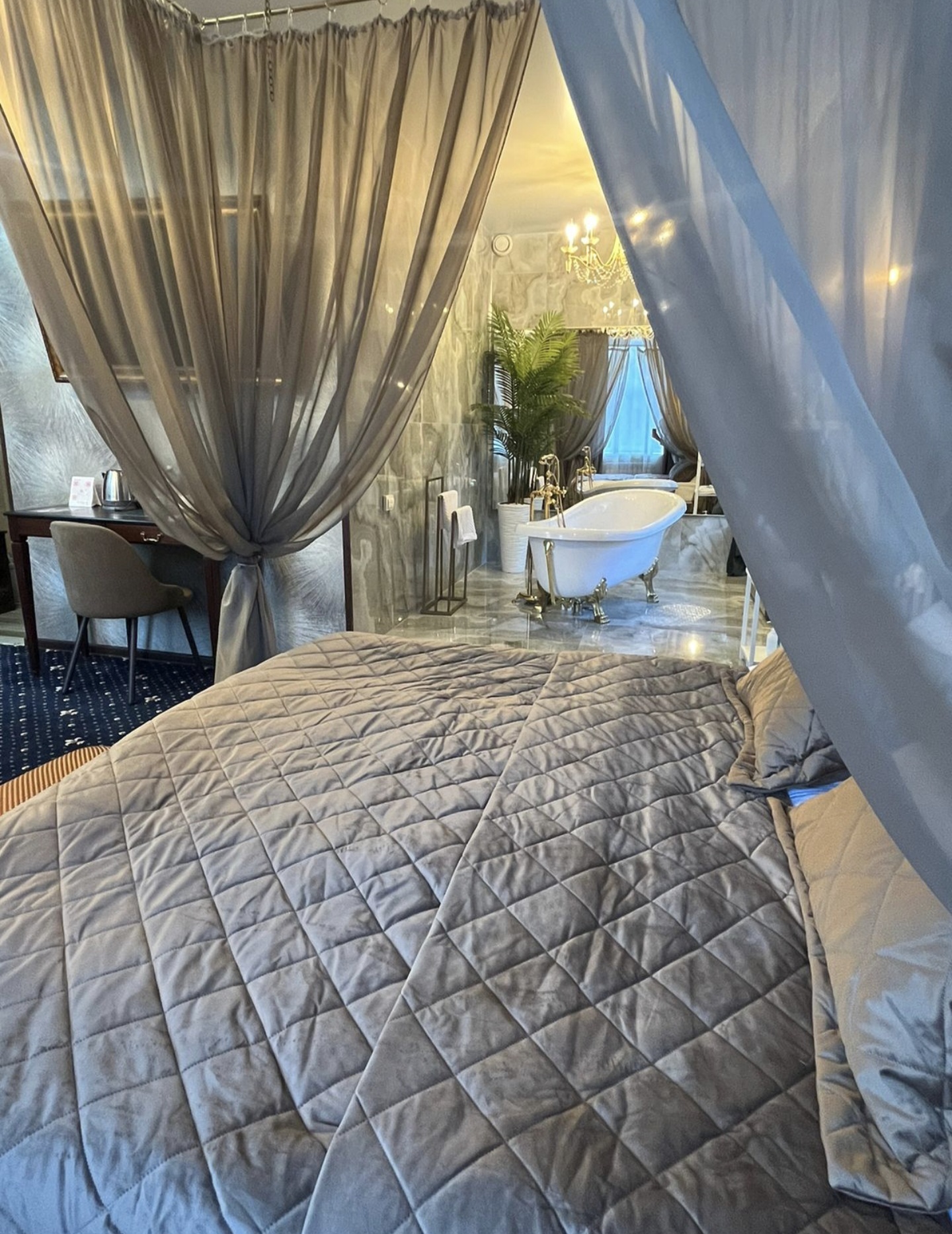 - Санузел: с джакузи, туалетные принадлежности, фен
