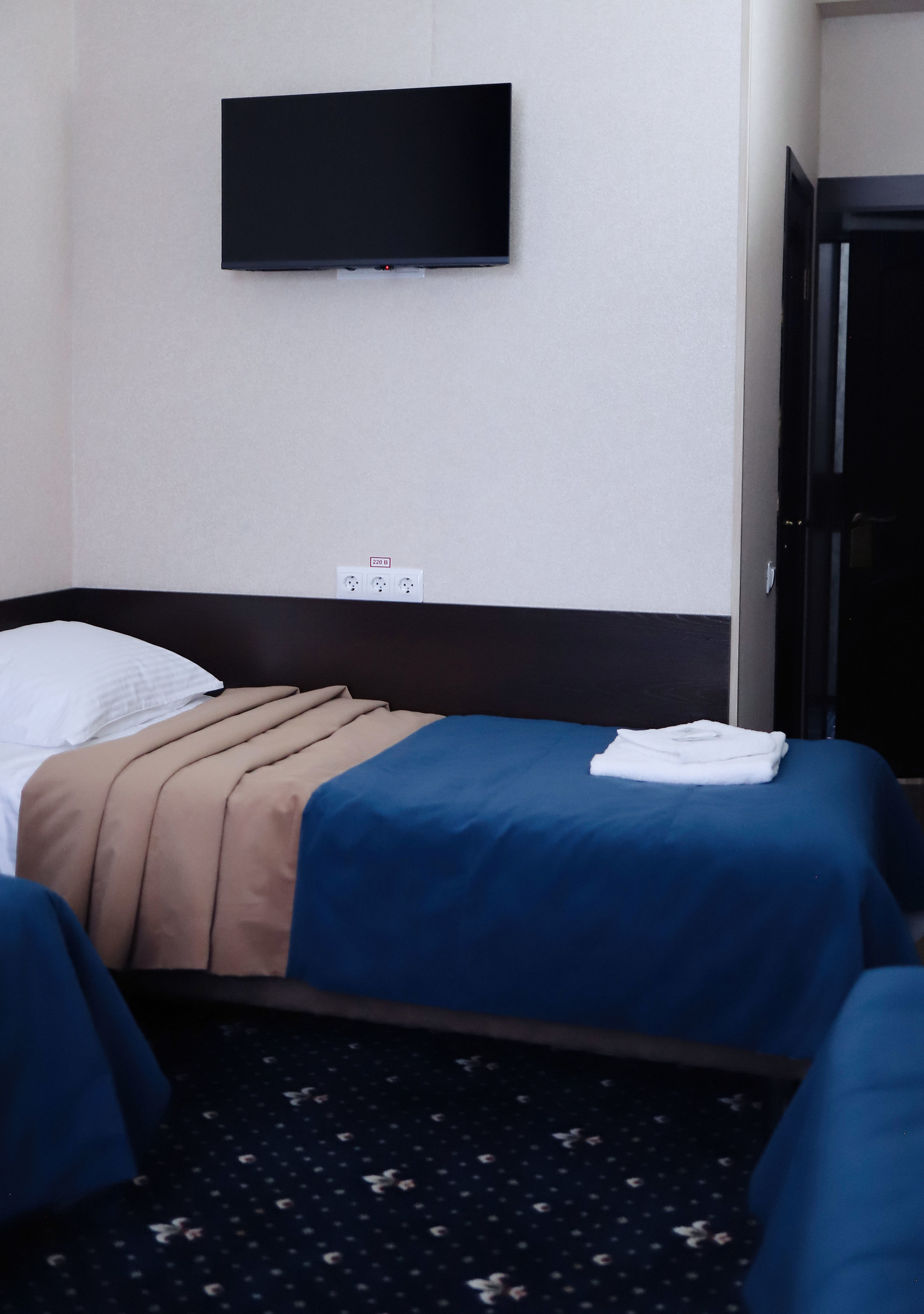 | Стандарт 3-местный (std) | 19 кв.м. | 3 чел. | Мебель (вешалка, зеркало, кровати односпальные, прикроватные тумбочки, стол, стул, шкаф), Оборудован... | |