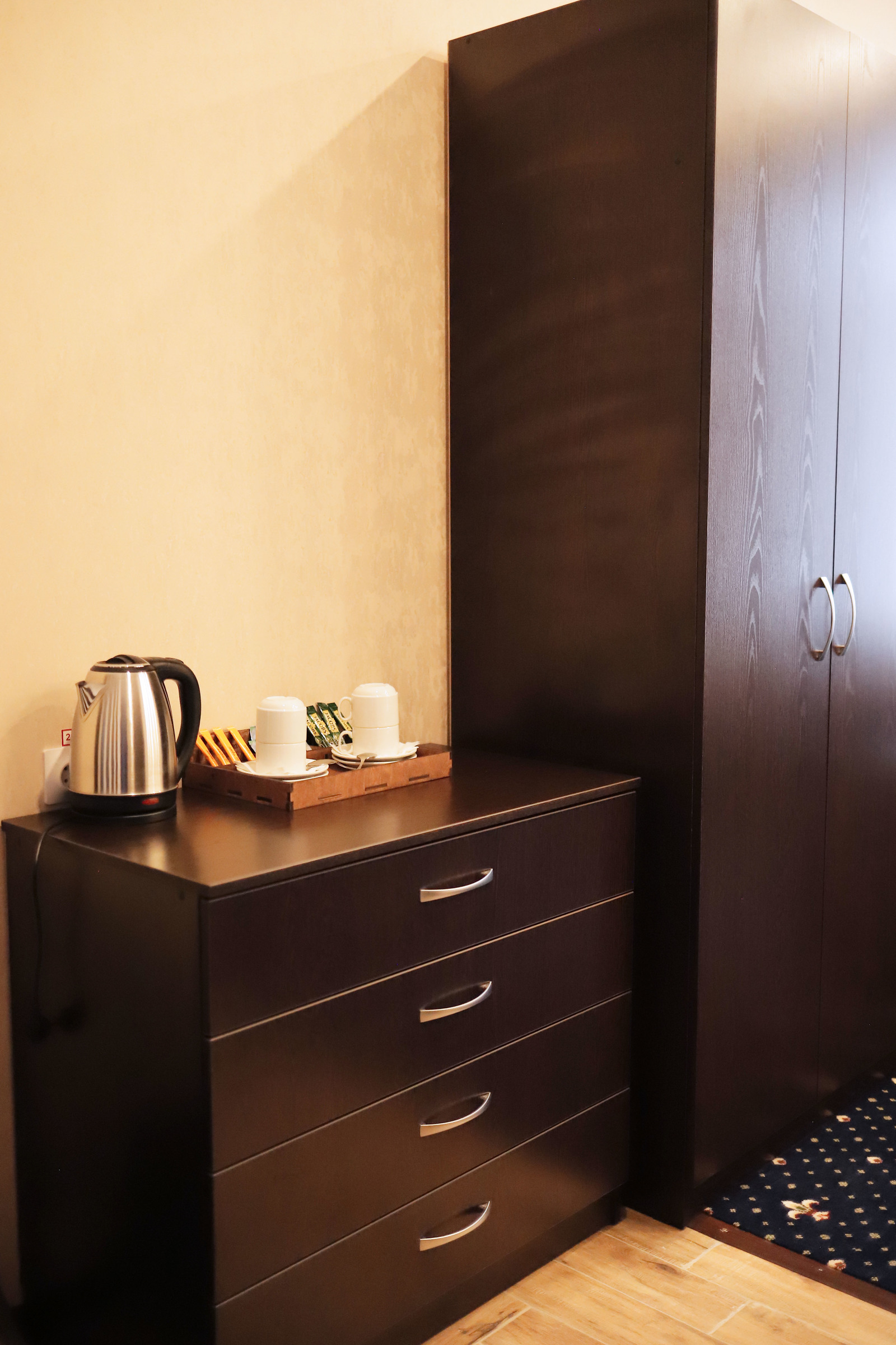 - Оборудование: кофемашина, микроволновая печь, мини-холодильник, телевизор ЖК, чайный набор посуды, электрочайник