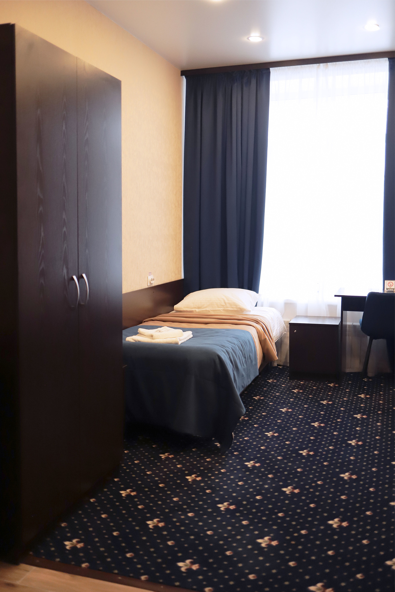 | Стандарт 1-местный (std) | 10 кв.м. | 1 чел. | Мебель (вешалка, зеркало, кровать односпальная, стол, стул, шкаф), Оборудование (мини-холодильник, т... | |